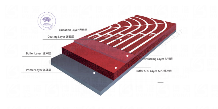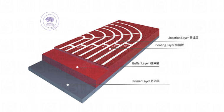 由微發(fā)泡閉孔技術的聚氨酯底膠鋪設而成,為世界田徑(國際田聯)認可推薦為各大型國際賽事運動員競賽和訓練專用場地類型,耐高低溫、沖擊吸收。